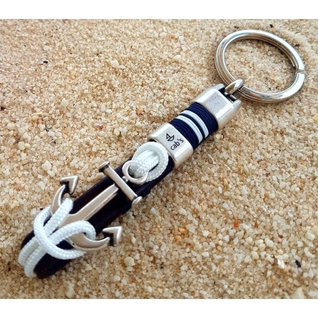 Llavero náutico, fabricado con cuero, cabo náutico y zamak. "Hecho a mano". 100% artesanal. Fabricado en España.